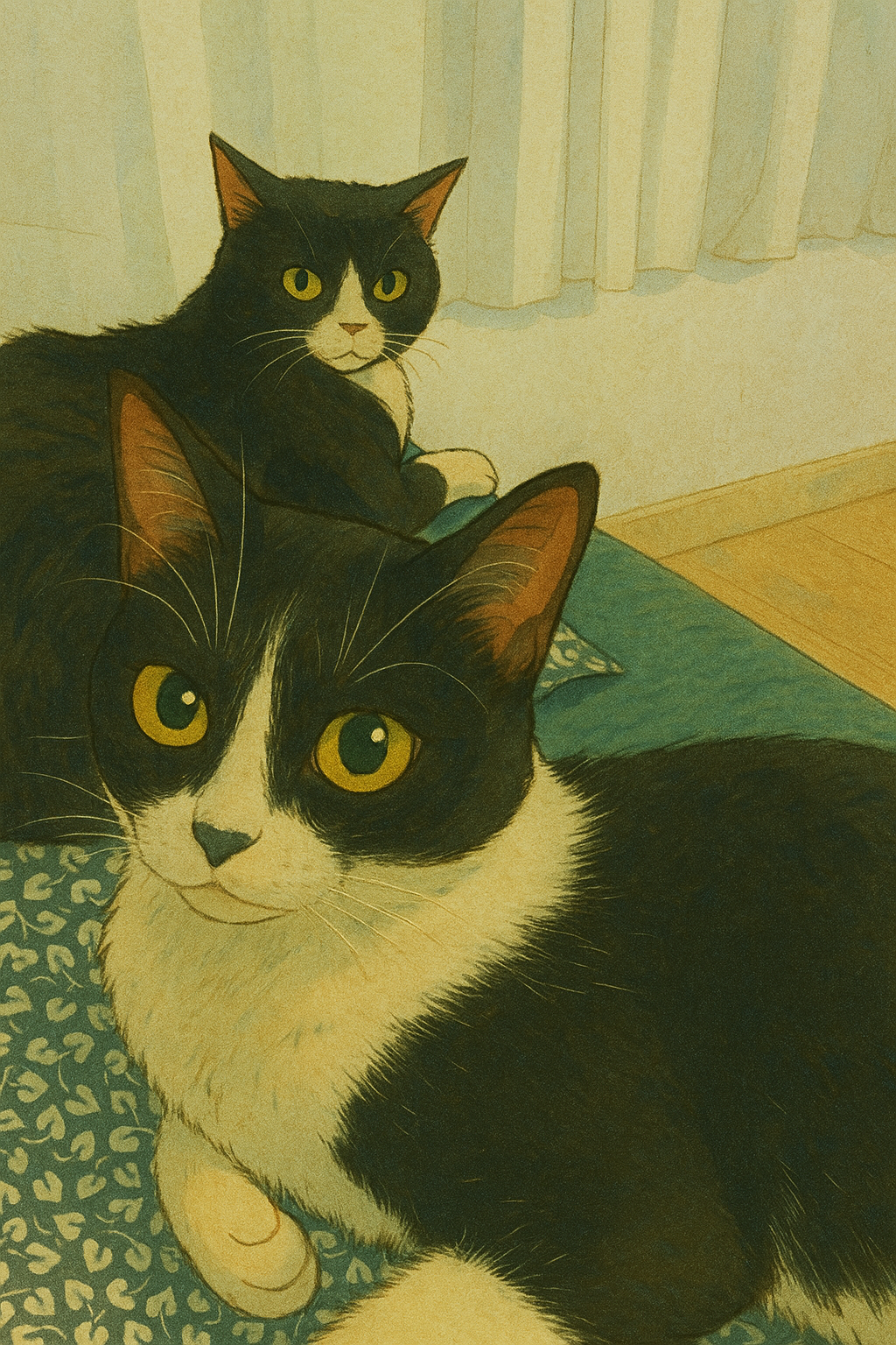 Nuestros dos gatos, encargados de logística emocional y supervisión estratégica (también conocidos como: los que se suben al teclado cuando más prisa hay).